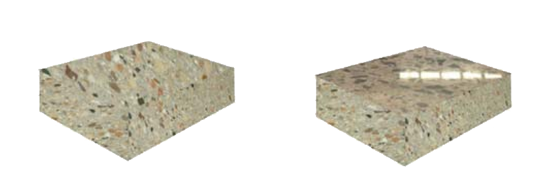 Resin bonded diamond are to be used to polish the concrete in stages; each stage leaves the concrete surface smoother and more refined